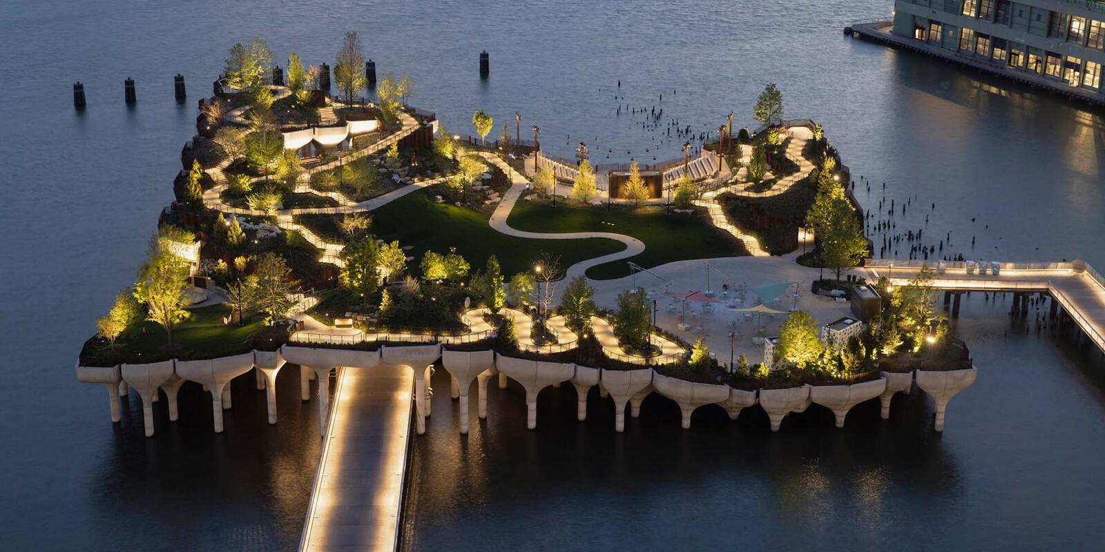 Little Island es un parque público flotante en el río Hudson, más o menos a la altura de la calle 13 y del barrio de Chelsea.